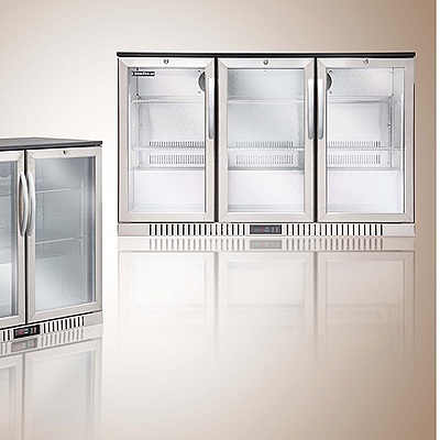 Doors: Stainless, Self closing, heated, Lights on when opening, Lockable, Double tempered glass